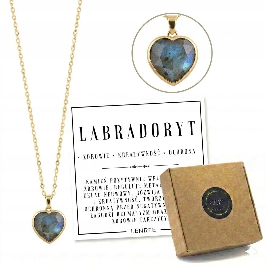 Naszyjnik LABRADORYT serce damski złoty naturalny kamień LENREE
