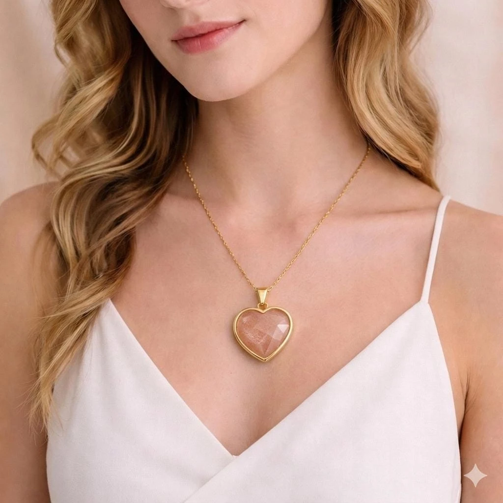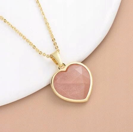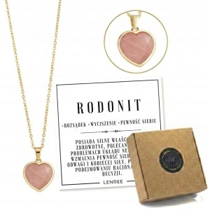 Naszyjnik RODONIT serce damski złoty naturalny kamień prezent LENREE