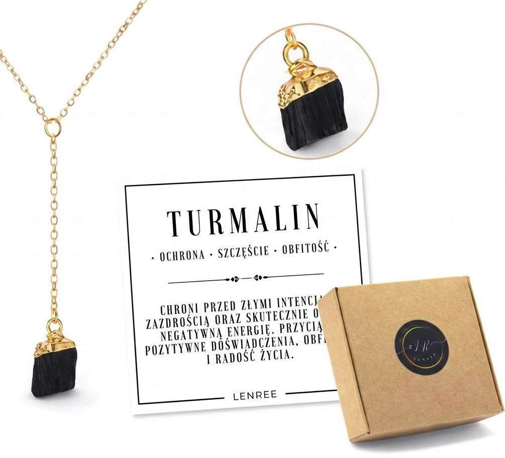 Naszyjnik TURMALIN czarny naturalny kamień surowy damski złoty LENREE