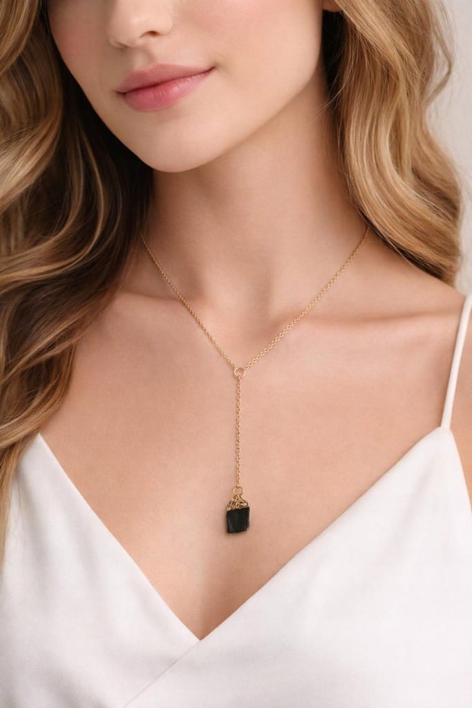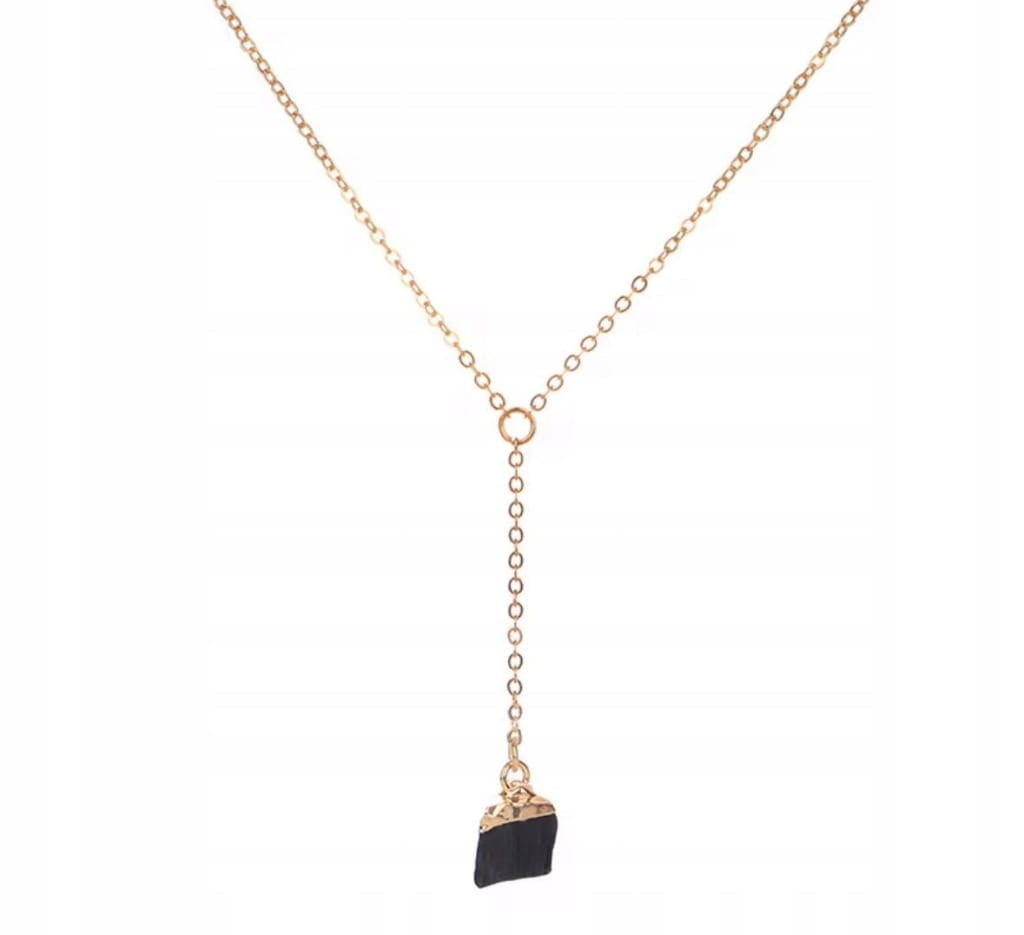 Wyjątkowy naszyjnik z naturalnym czarnym turmalinem w surowej formie, który zachwyca swoją naturalną strukturą i głębokim, eleganckim kolorem. Surowy minerał połączony z delikatnym złotym łańcuszkiem tworzy stylową i ponadczasową biżuterię.