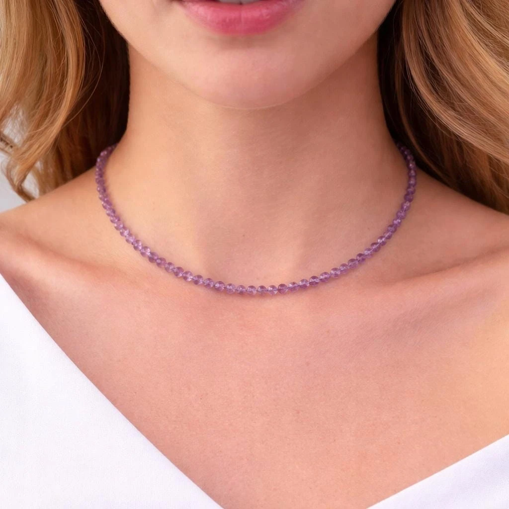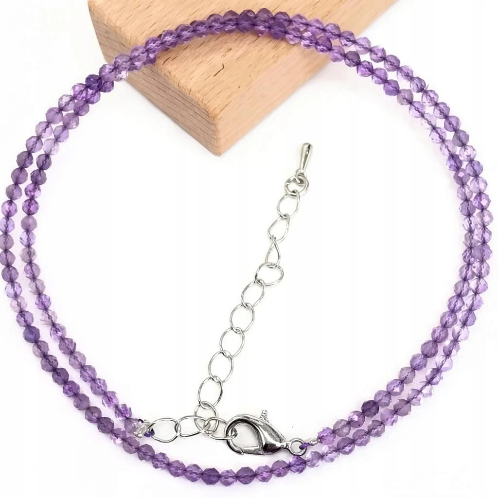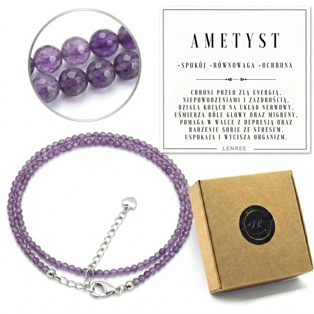 Naszyjnik z kamieni AMETYST fasetowany fioletowy srebrny LENREE