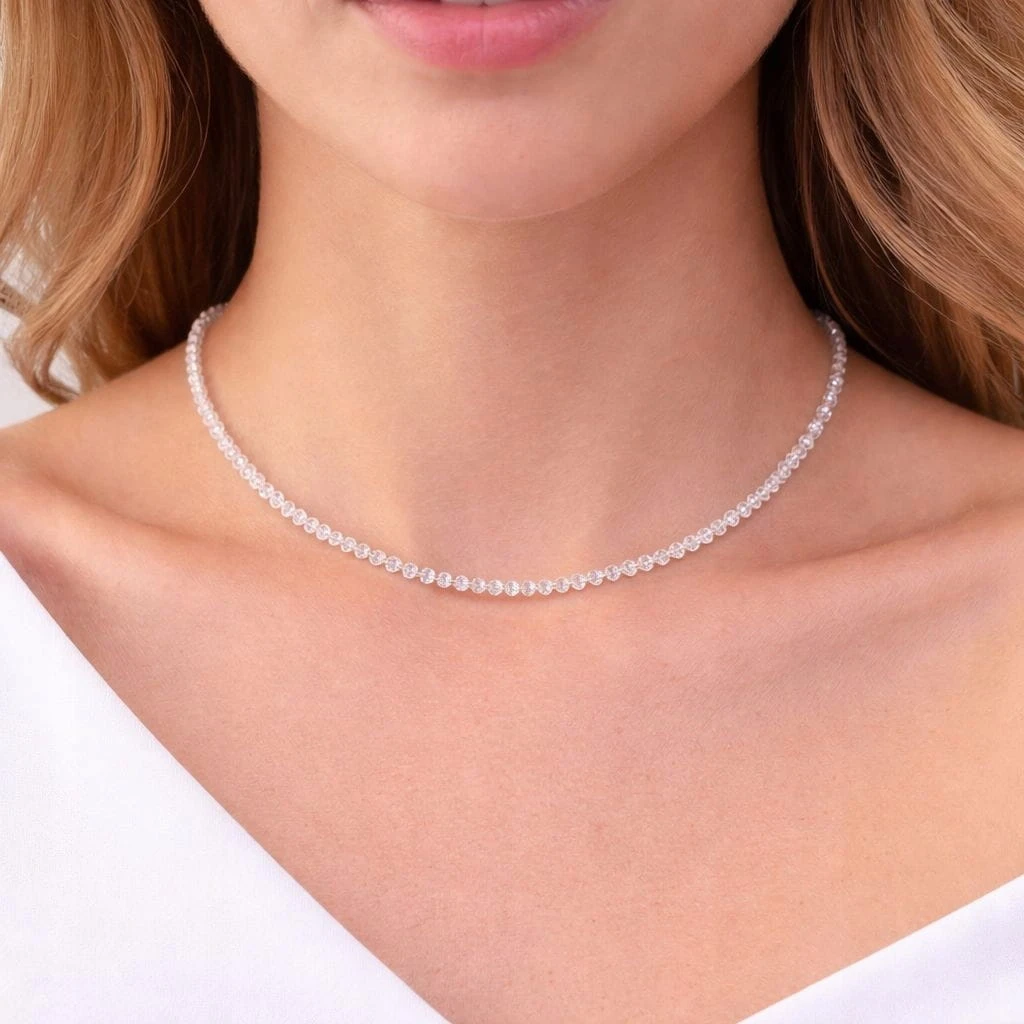 Naszyjnik z kamieni KRYSZTAŁ GÓRSKI fasetowany elegancki LENREE