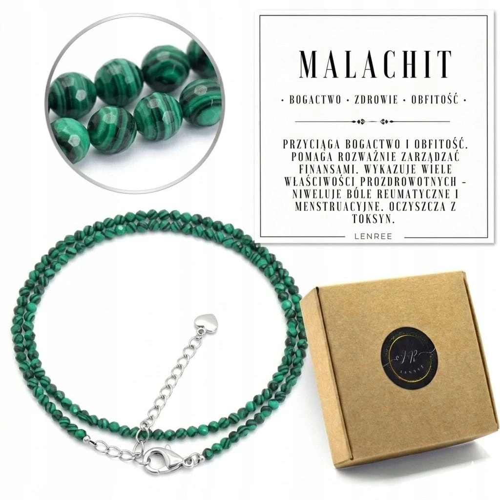 Naszyjnik z kamieni MALACHIT fasetowany elegancki zielony LENREE