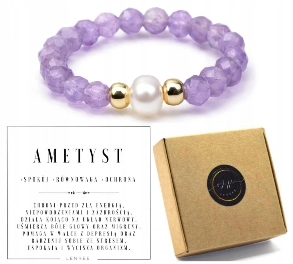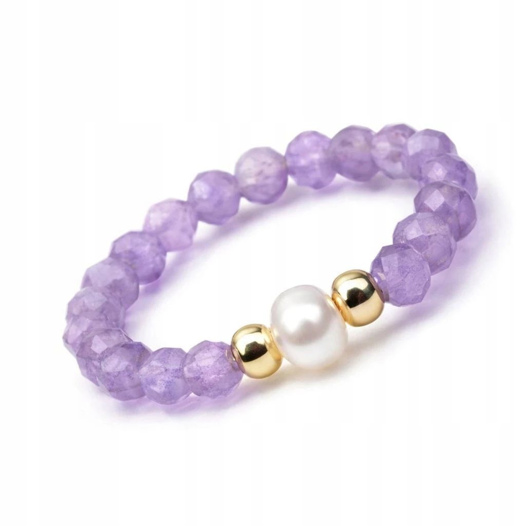 Pierścionek z kamieni naturalnych AMETYST perła damski LENREE