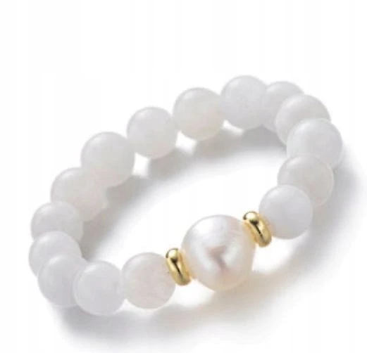 Pierścionek z kamieni naturalnych KAMIEŃ KSIĘŻYCOWY perła LENREE