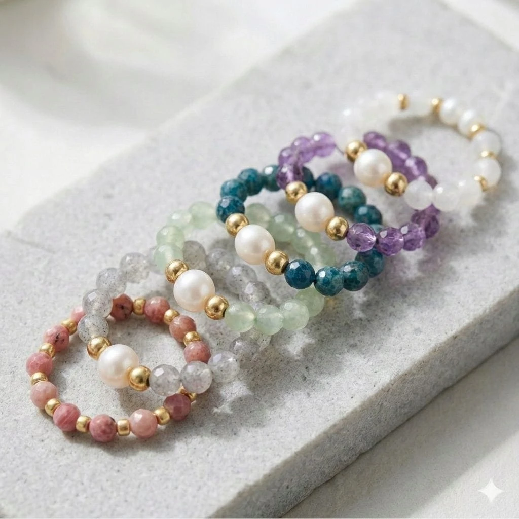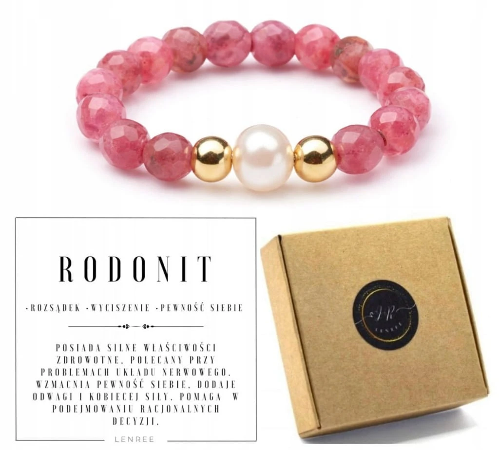 Pierścionek z kamieni naturalnych RODONIT perła damski LENREE