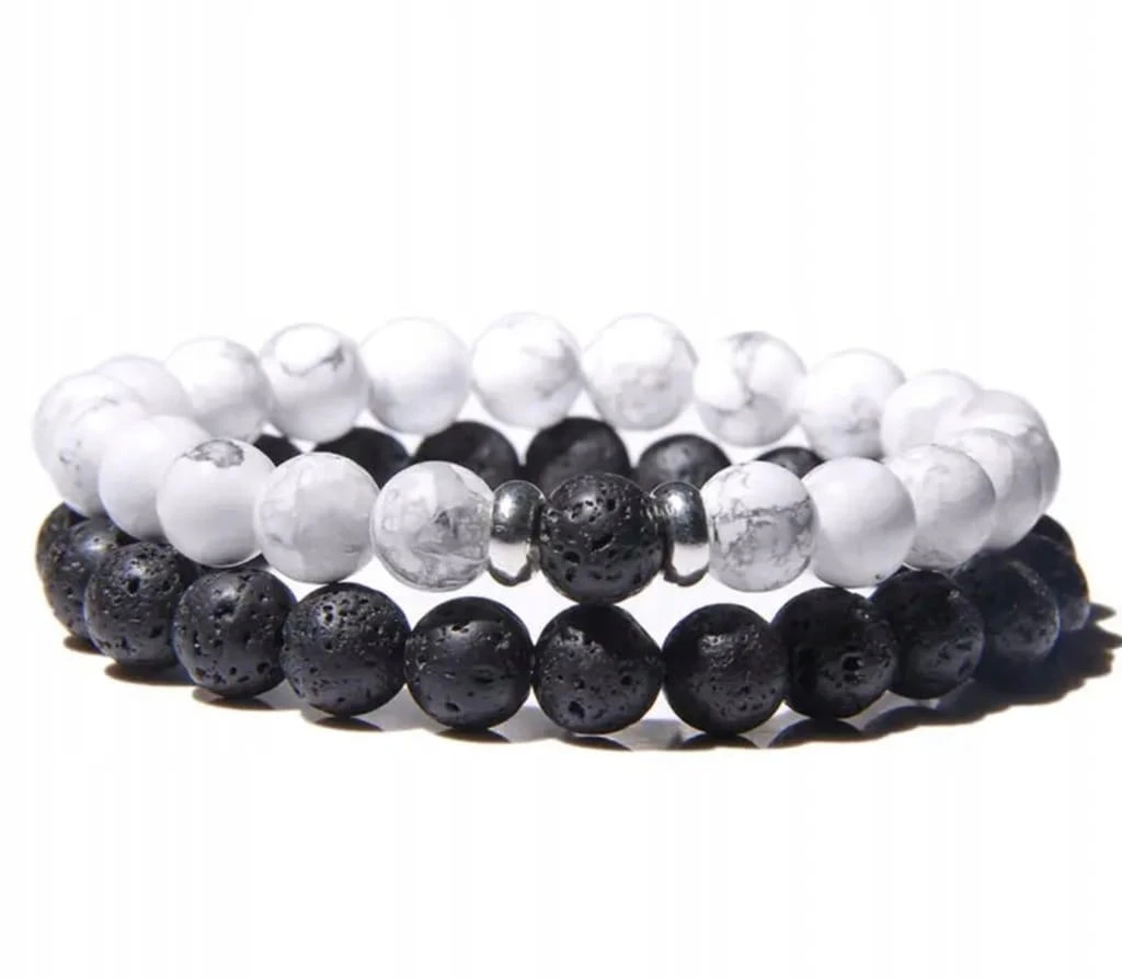 Przedmiotem aukcji jest zestaw bransoletek męskich wykonanych z kamieni naturalnych LAWA WULKANICZNA i HOWLIT BIAŁY